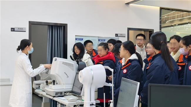 跟随工作人员的讲解,一个完整、精密的眼科诊疗流程徐徐展开,同学们通过亲眼观察、亲身实践感受各项检查的操作与原理,极大程度激发了同学们对眼科学的兴趣,也对眼科医疗背后的科学逻辑和人文关怀有了更深刻的认识。